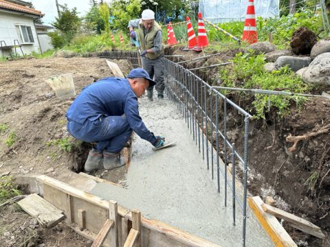 今回の工事はブロック積みと境界のコンクリート壁工事になります。今1番多い工事と言っても良い境界工事!!私たちはコンクリート製品を使うか、その場でコンクリートを打ち込む現場打ちを行うかのどちらかになります。どちらも良い点、悪い点があります。コンクリート製品を使う方は施工が早く、少しだけ安価になります。ただし耐久性は現場打ちの方が高くなります。悪い点は、逆のことを言います。コンクリート製品は耐久性が現場打ちに比べ弱いです。また現場打ちは少しだけコンクリート製品より高いです。どちらを取るかは現場を見て一緒に考えていくのが平沢土建株式会社です。1人で悩む前にまずご相談をお願いします。