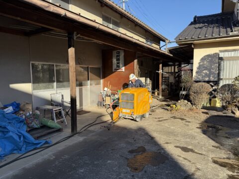 今回は解体工事の準備として、全てのコンクリートが壊れないように切断しています。今回の解体でアスベスト調査によりアスベストが出てしまいました。