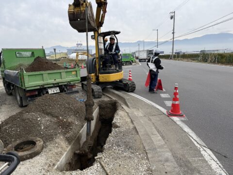 今回の工事はアイシティー21南側で行っている水道管布設替工事になります。この工事は大体4ヶ月ほどかかる工事になります。個人宅の外構工事に支障が出るかも知れませんが、ご了承ください。